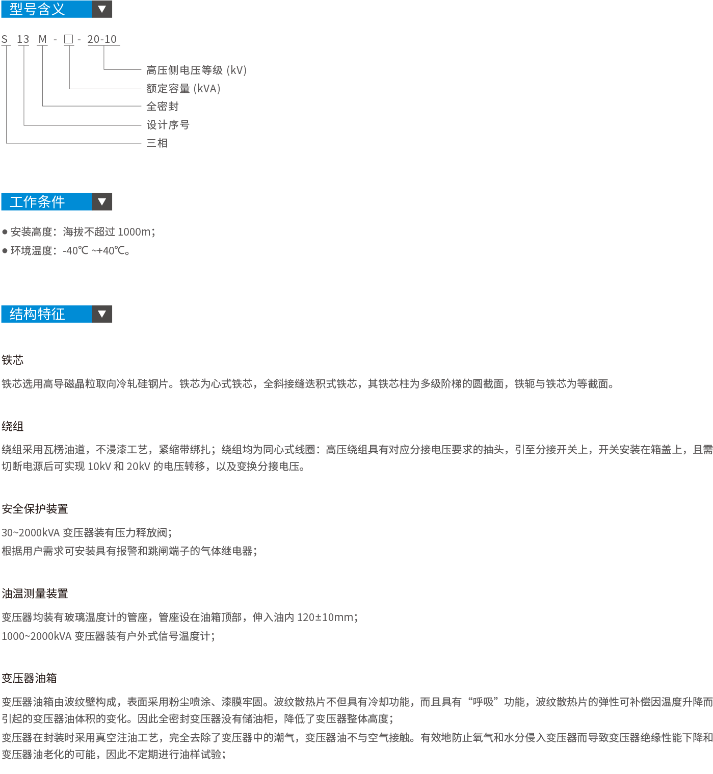 S13-M型双绕组无励磁调压油浸式电力变压器