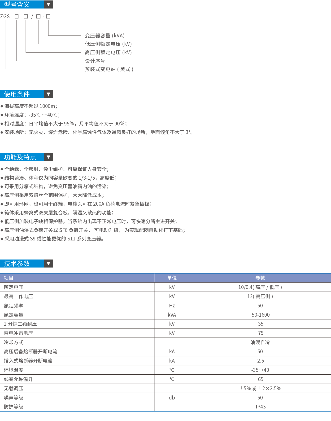 本产品是吸收国外技术,结合国内实际情况研制开发的,整台产品具有体积小、安装维护简便、低噪音、低损耗、防盗、过负荷能力强、全保护等特点。适用于新建小区、绿化带、公园、车站宾馆、工地、机场等场所。 ZGS系列预装式箱式变电站(美式), 适用于10kV环网供电,双电源供电或终端供电系统中,作为变电、计量、补偿控制和保护装置。 本产品符合下列标准: GB/T17467-1998《高压低压预装式变电站》 DL/T537-93《6-35kV箱式变电站订货技术条件》